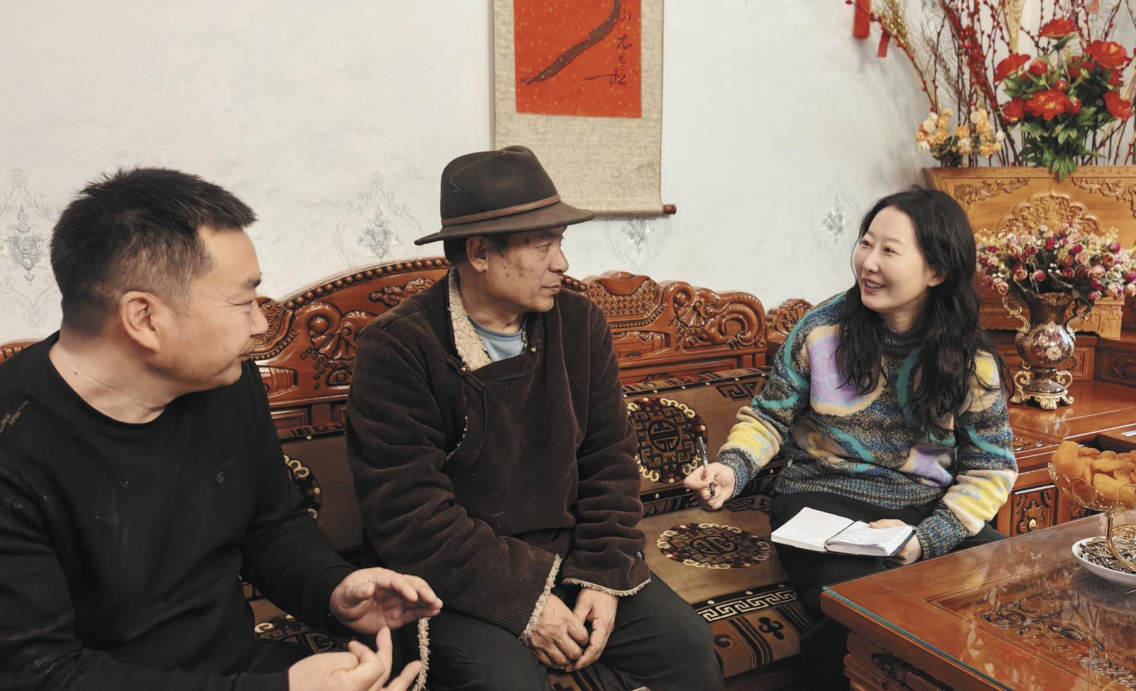 青海日報記者羋嶠在黃南藏族自治州同仁市吾屯下莊村村民家中采訪。