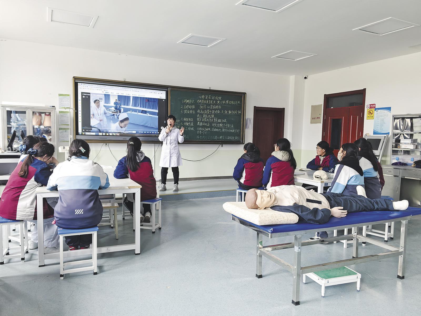 教學(xué)中,她從不說教式灌輸。講授《口腔護(hù)理》時,結(jié)合高原干燥氣候易引發(fā)口腔潰瘍的特點(diǎn),設(shè)計“牧民口腔健康護(hù)理”案例;講解心外按壓時,帶著學(xué)生到社區(qū)模擬搶救場景。