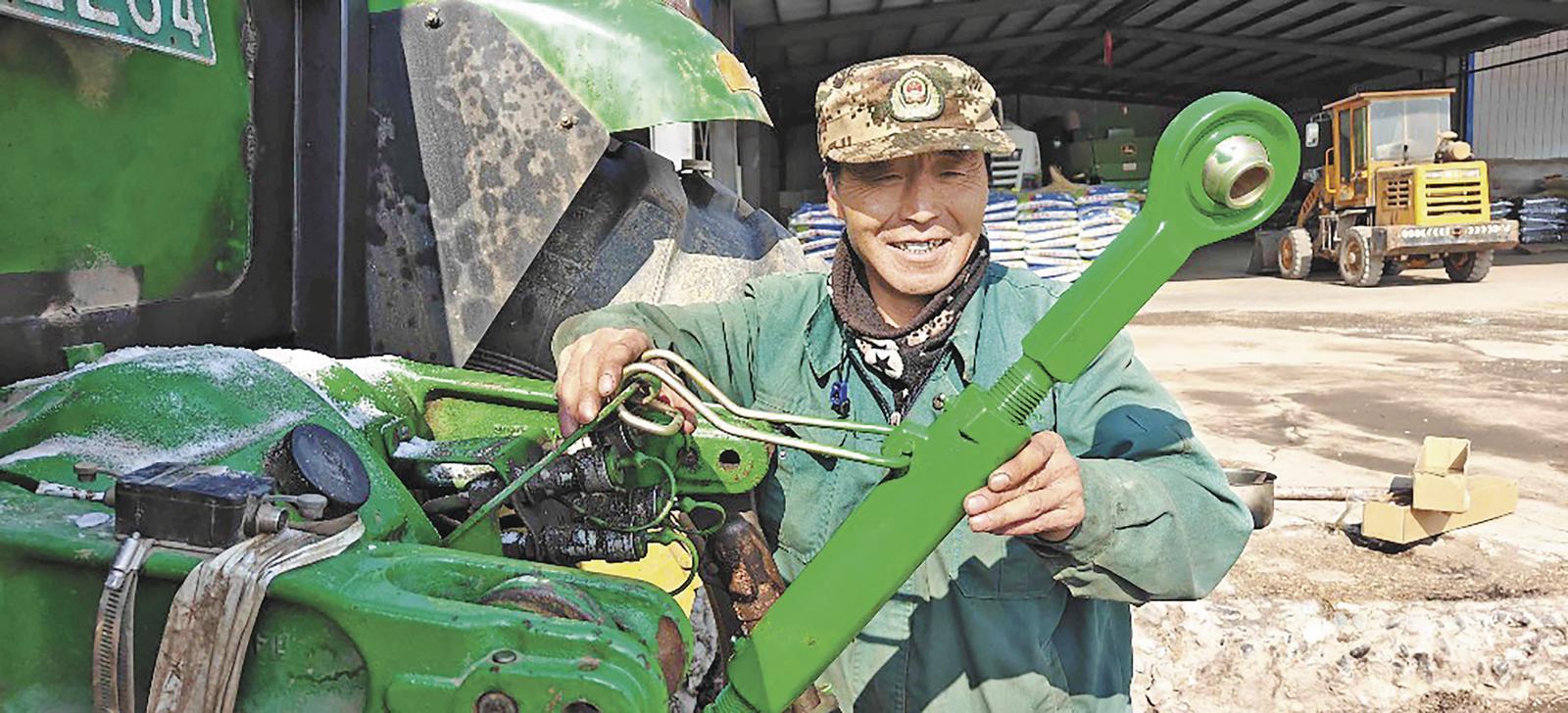“再過十來天就要下地了,得把這些‘鐵?!藕蚝??!奔易”鄙洁l(xiāng)下金巴臺村的農機手王萬壽,從一臺拖拉機的駕駛室探出頭來,黝黑的臉上掛著汗珠。去年這會,他還在四處找零活干;而今,他已是持有農機駕駛證的熟練機手,即將駕駛這臺“鐵牛”,開啟又一個春耕季。