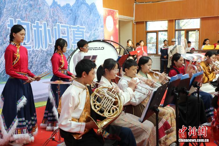 圖為果洛西寧民族中學藏族青少年管樂團進行演奏。馬銘言 攝