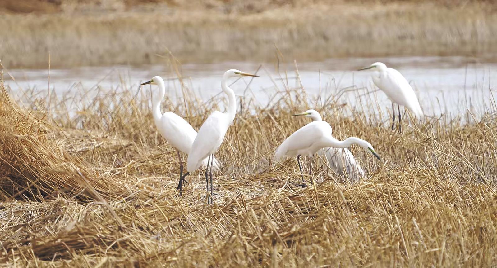 3月29日,在海西蒙古族藏族自治州格爾木市察爾汗?jié)竦?、魚水河濕地、金魚湖濕地,成群的水鳥在水面翩躚起舞,處處生機盎然。格爾木生態(tài)資源優(yōu)良,林草與濕地面積廣闊,是鳥類重要的棲息地和越冬地。目前,當地已監(jiān)測到鳥類至少30余種,包括黑頸鶴、大天鵝、灰鶴、赤麻鴨等,其中包含多種國家重點保護野生動物。隨著生態(tài)環(huán)境持續(xù)改善,格爾木正逐漸成為鳥類棲息繁衍的理想家園。