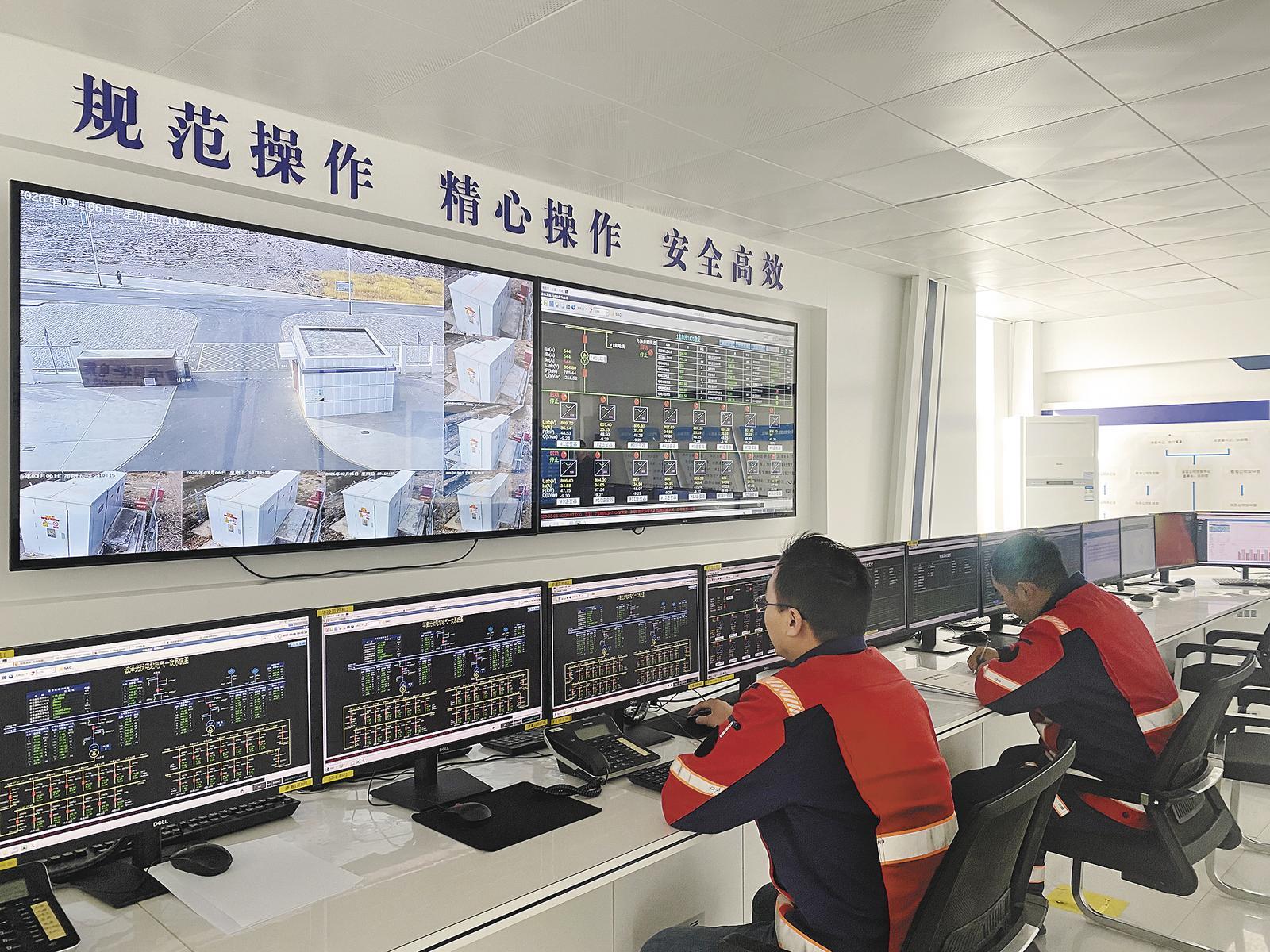 在儲(chǔ)能部分,記者了解到,儲(chǔ)能單元里有常規(guī)電池、裝配式電池、液體電池,這些不同類型的電池協(xié)同配合,彌補(bǔ)光伏發(fā)電時(shí)強(qiáng)時(shí)弱的波動(dòng),讓電網(wǎng)更穩(wěn)定。