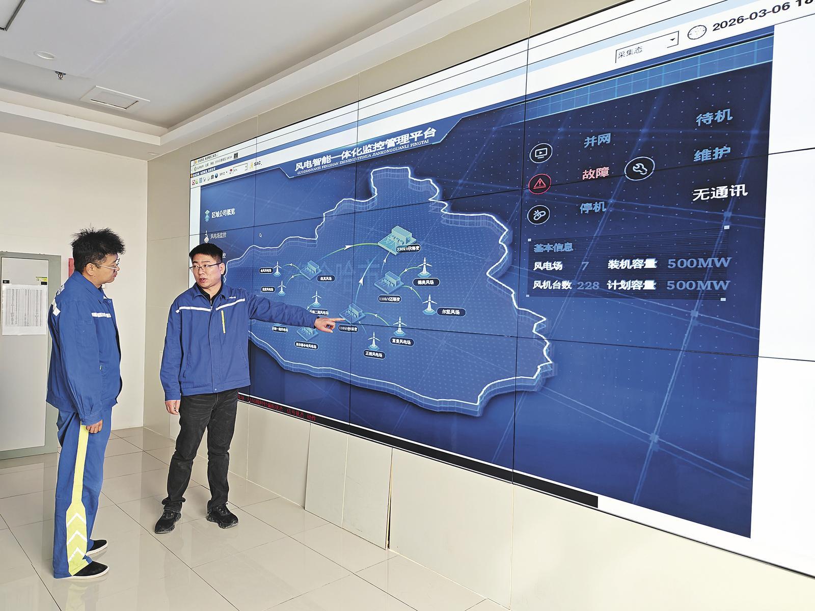 通過監(jiān)控管理平臺(tái)交流風(fēng)電運(yùn)行情況。