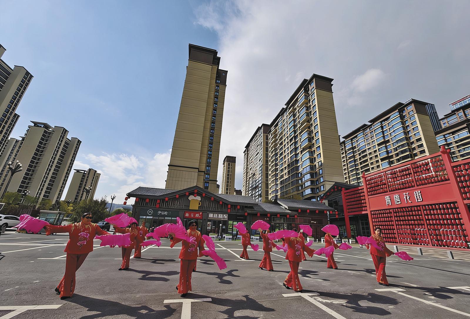 青唐花街紅扇舞。 佘佐軍 攝