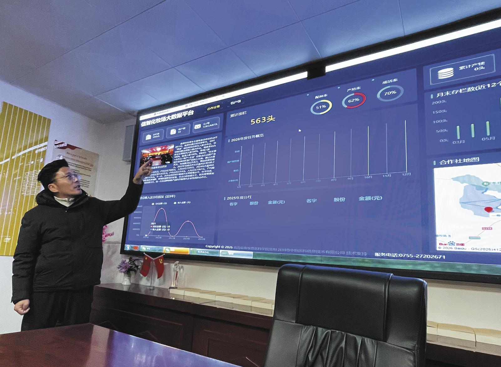 合作社負(fù)責(zé)人旦正加,守在監(jiān)控大屏前,目光緊盯屏幕。無需策馬奔行在廣袤草場(chǎng),無需逐牦牛蹤跡踏遍山野,指尖輕觸,千里牧場(chǎng)的光景就能盡收眼底。
