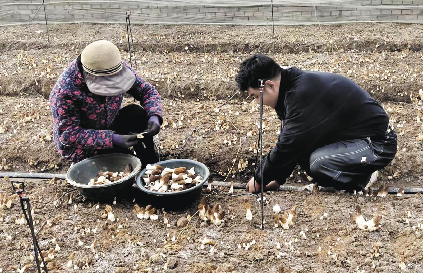 采摘羊肚菌。