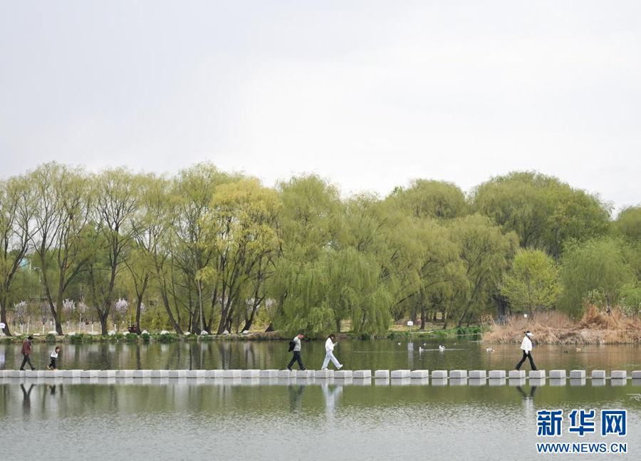 4月13日,游客和市民正在蘆花灣游玩。新華社記者 張龍 攝