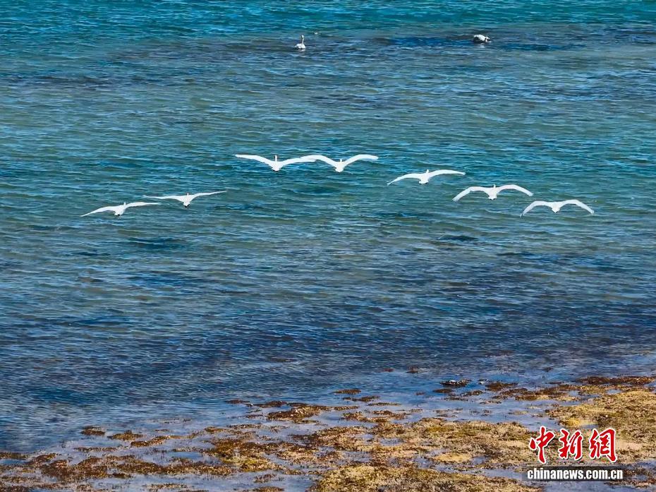 4月9日,青海省海北藏族自治州剛察縣境內(nèi),斑頭雁、大天鵝、漁鷗等水鳥成群翱翔,青海湖北岸迎來候鳥遷徙季。據(jù)了解,青海湖湖冰已于2026年4月3日完全融化,開湖節(jié)奏明顯加快。