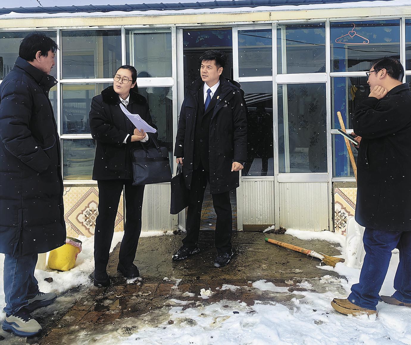 一次,在去共和縣石乃亥鎮(zhèn)切吉村調查調解案件的路上,奔波了將近三個小時的車子在被大雪覆蓋的土路上陷進了泥坑。周萬春和同事們一起推車,累得氣喘吁吁,手上、身上沾滿了泥點。一起買賣合同糾紛案件的被告——藏族小伙扎西(化名),在家中見到風塵仆仆冒雪上門的法官時,一臉的詫異和不安:“雪這么大,我們都好多天沒出門了,你們法官怎么還跑來了?”經(jīng)過兩個多小時的釋法和協(xié)調,扎西終于同意簽署分期還款的調解方案,并且當場用手機轉賬支付了首付款一萬元。調解結束時已經(jīng)下午兩點多,車子艱難開出牧場后,司機師傅提醒:“先停下來吃點干糧吧?”大家這才想起來,早已餓得饑腸轆轆。