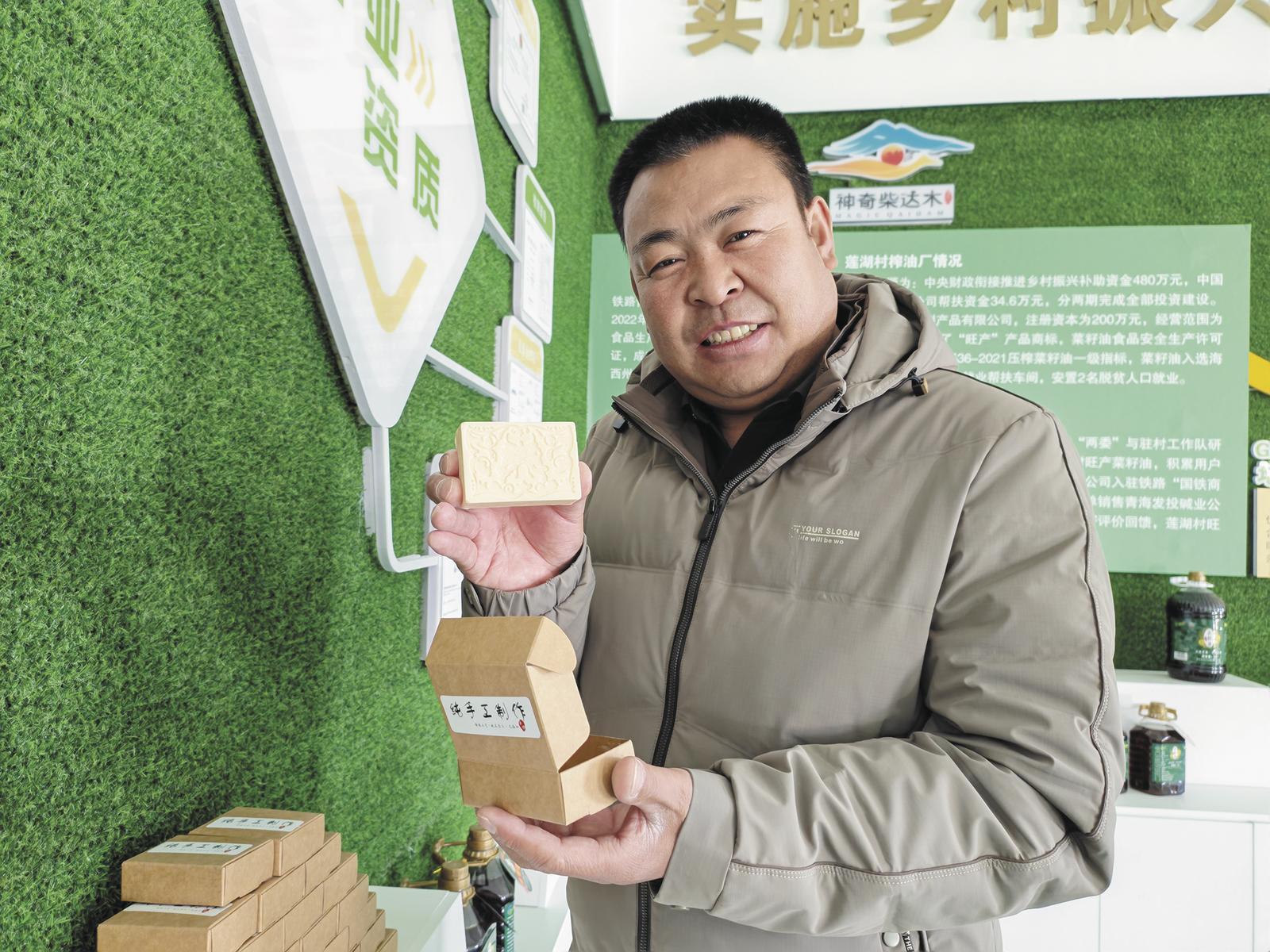產(chǎn)品生產(chǎn)出來后,村里在拓寬銷售渠道、打通市場銷路上下足功夫,多措并舉打開市場。村“兩委”主動對接海西州、德令哈市各級工會及青海發(fā)投堿業(yè)等企業(yè)單位,積極拓展線下團購與定點供應(yīng)渠道。同時,充分依托蓮湖村作為青藏集團定點幫扶村的優(yōu)勢,成功入駐鐵路“國鐵商城”開展線上推廣銷售,以“線上+線下”相結(jié)合的方式,持續(xù)提升產(chǎn)品知名度與市場占有率。