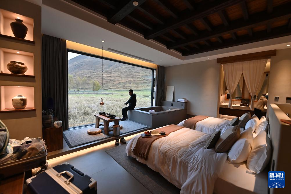 10月31日,在四川省甘孜州康定市新都橋鎮(zhèn),來自浙江的游客在民宿“贊巴·明境”的房間里休息。