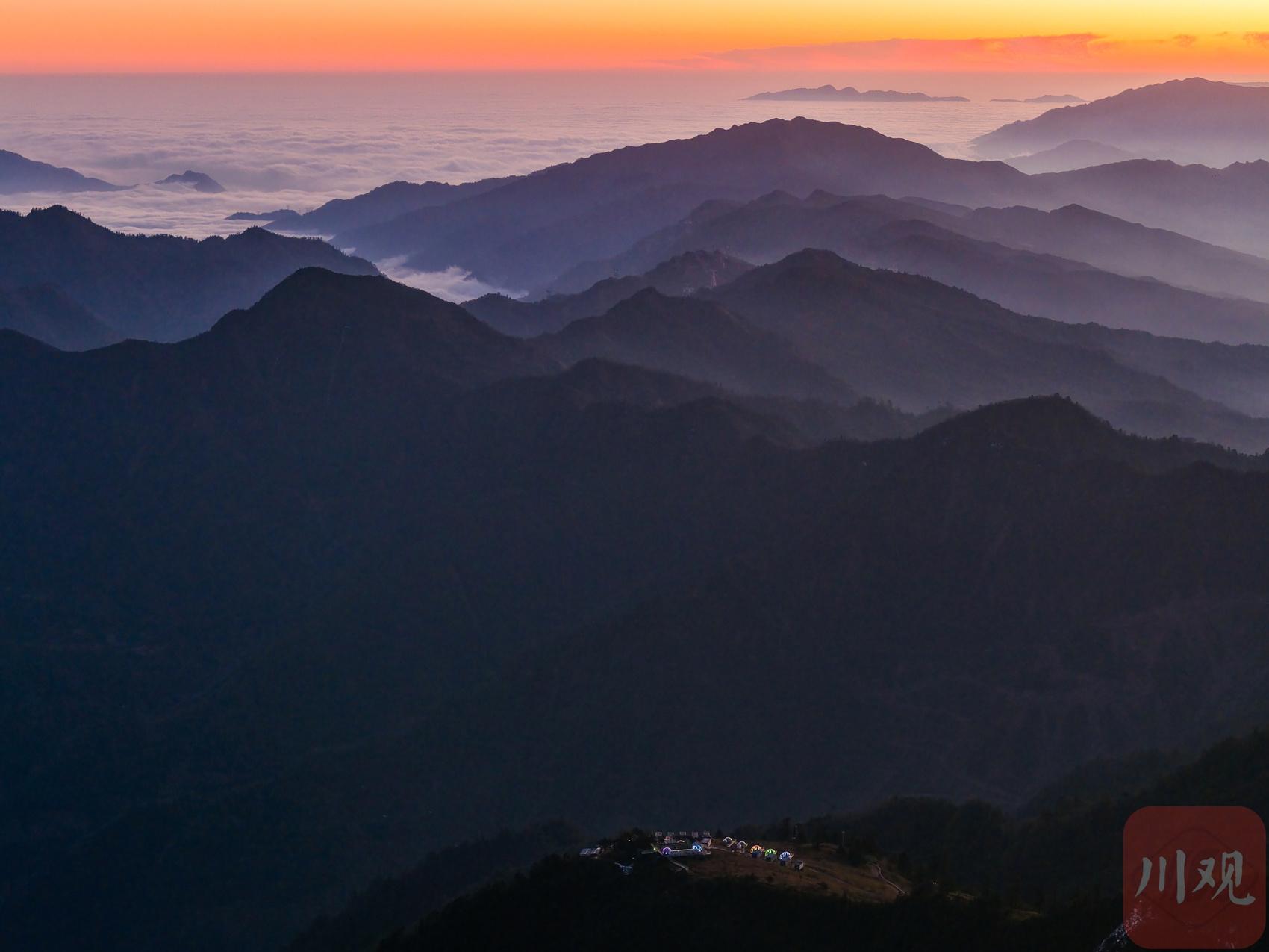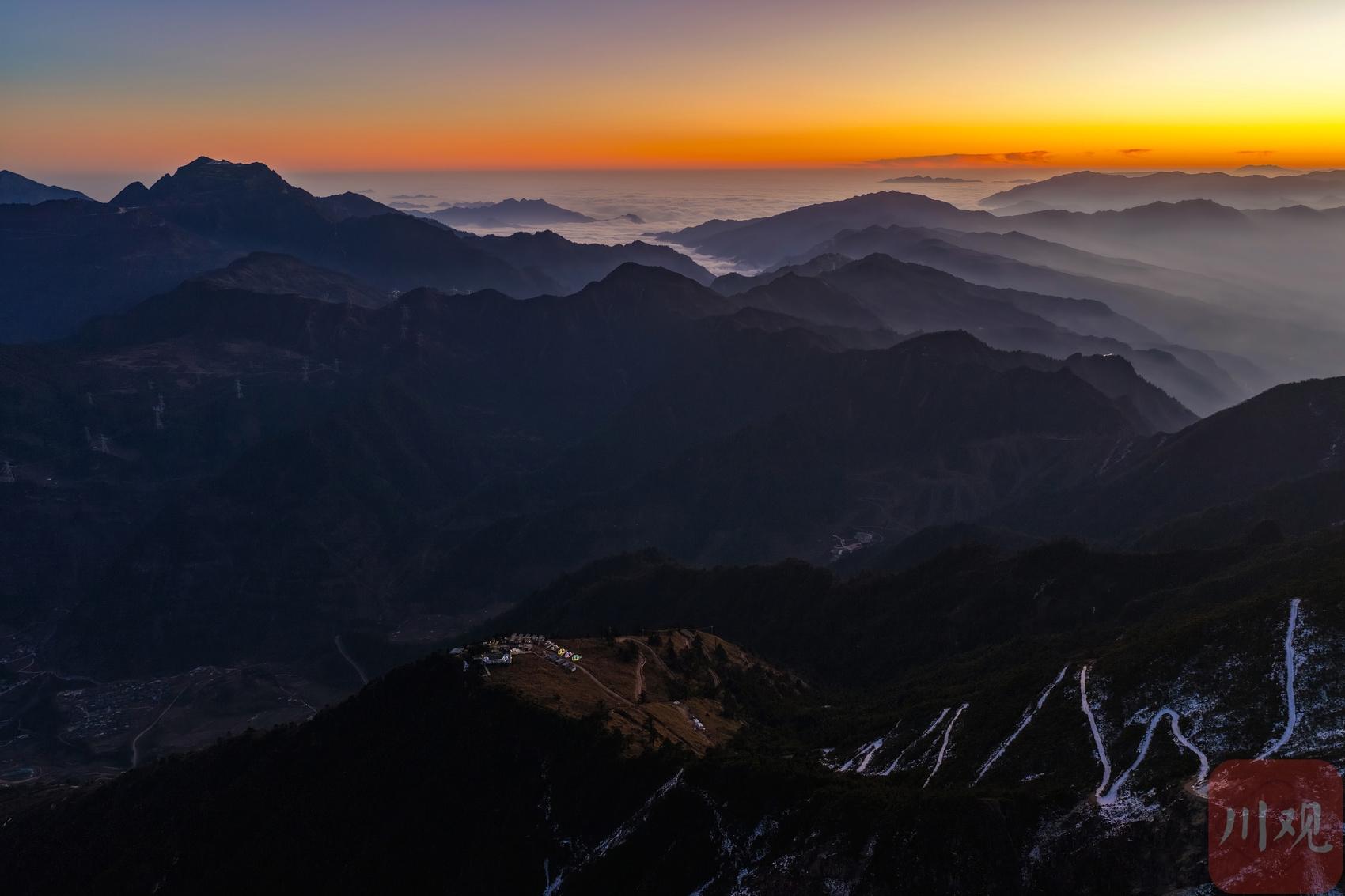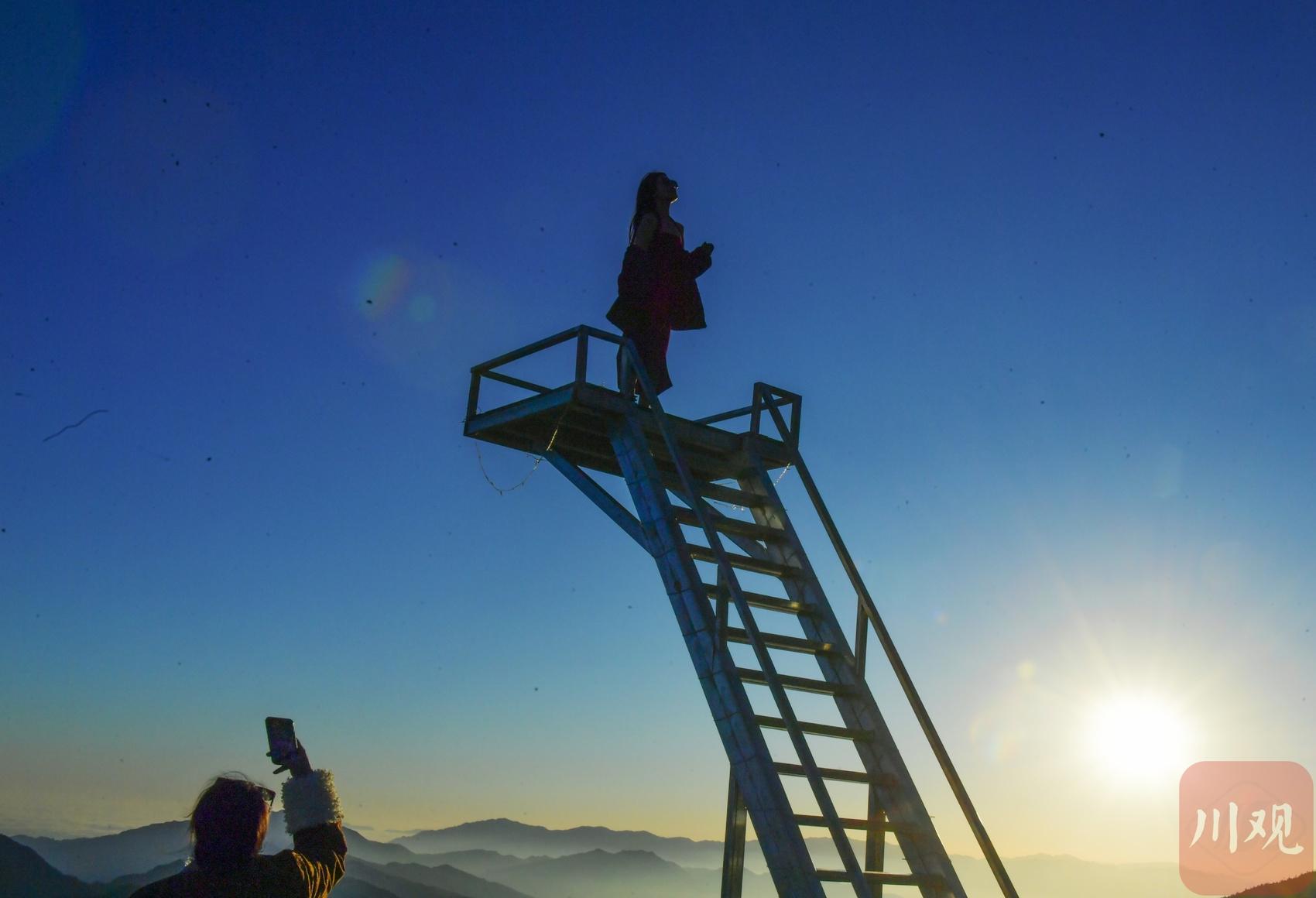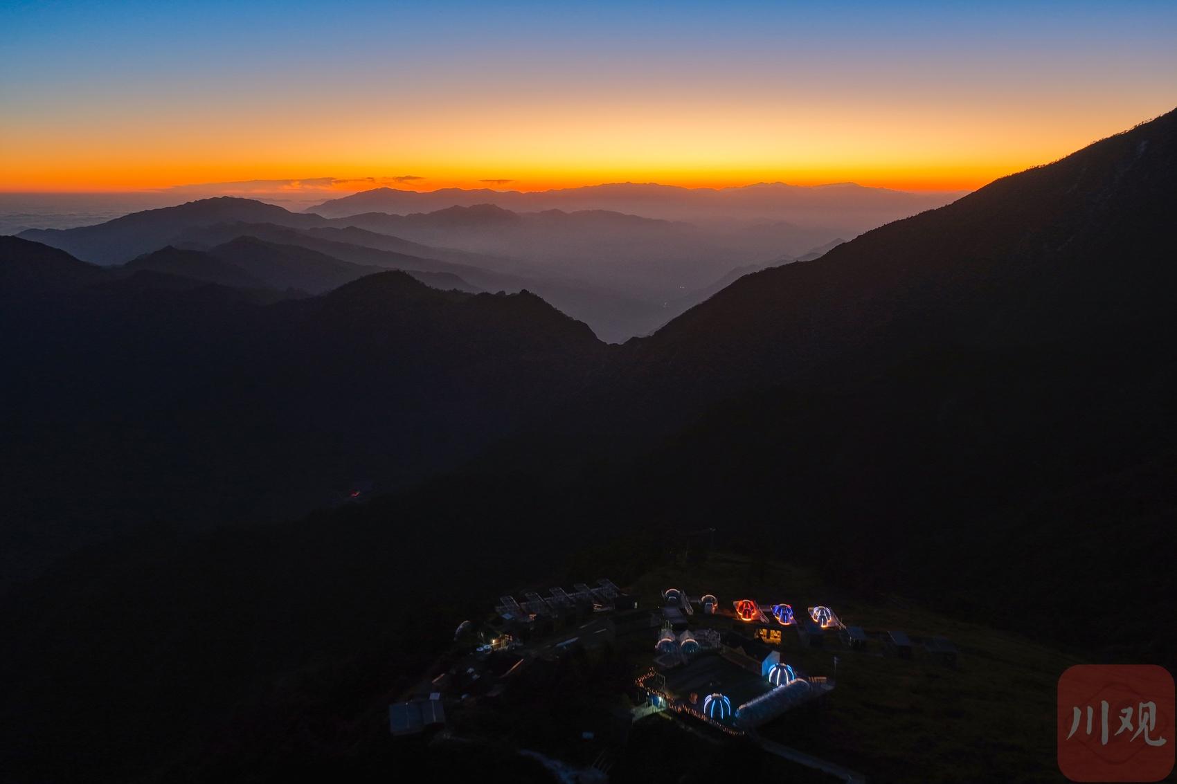 2025年12月18日清晨,游客在四川省甘孜藏族自治州瀘定縣興隆鎮(zhèn)化林村海拔2080多米的星空房附近拍攝日出。李向雨 攝