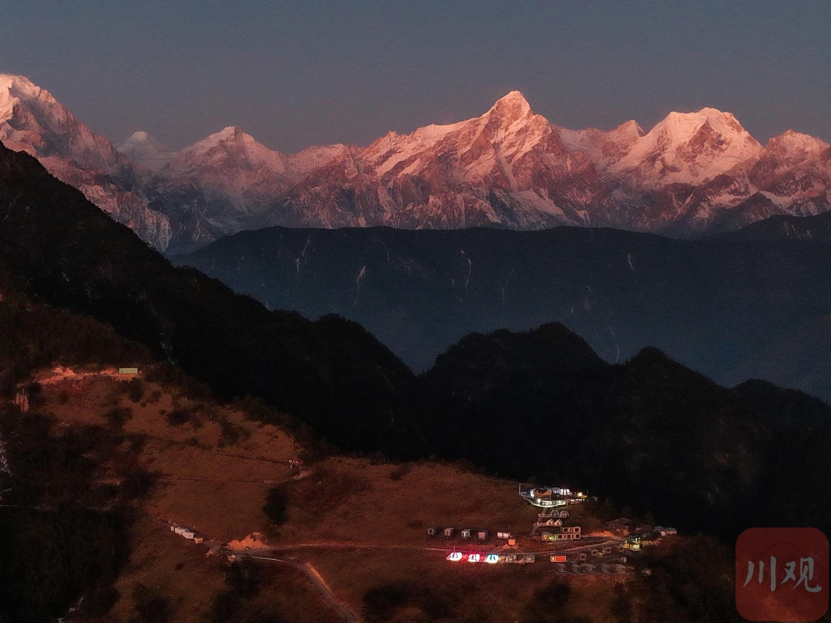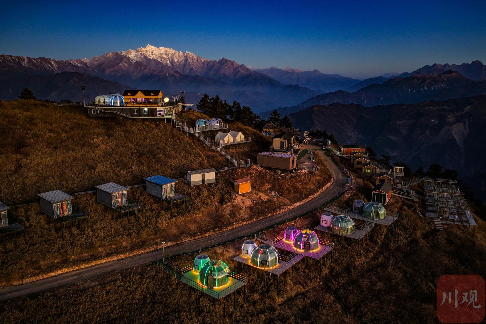 2025年12月18日清晨,四川省甘孜藏族自治州瀘定縣興隆鎮(zhèn)化林村海拔2080多米的星空房點(diǎn)亮山村。李向雨 攝