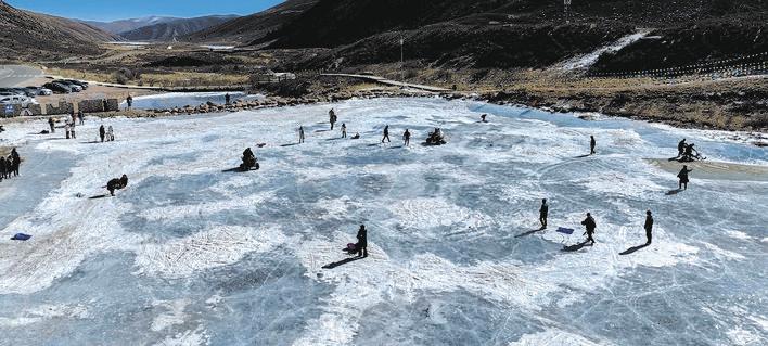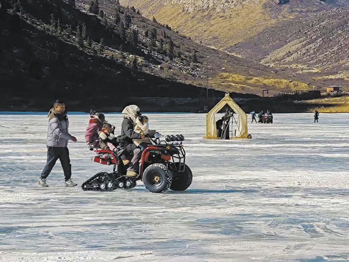 游客在冰湖上體驗(yàn)冰雪運(yùn)動(dòng)