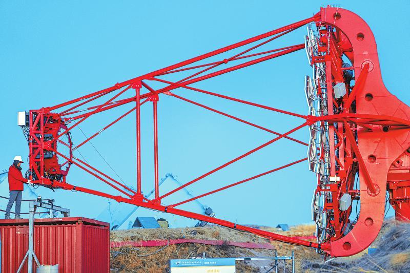 1月27日,科研人員在檢查高約14米、口徑為6米的LACT望遠鏡。