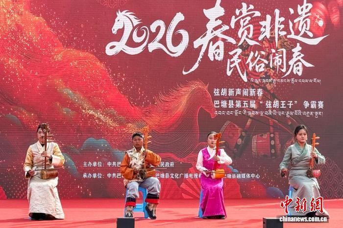 與此同時,備受矚目的巴塘縣第五屆“弦胡王子”爭霸賽也同步開賽,19名當?shù)叵液呤铸R聚一堂,以琴會友、以弦傳情,展開了一場精彩的“弦上對決”,為新春佳節(jié)增添了濃郁的文化亮色。
