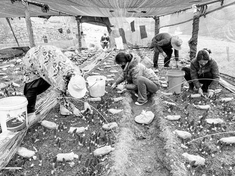 “以前在家閑得慌,沒(méi)啥活兒干,現(xiàn)在基地就在家門口,采菌子、分揀啥的都能干,一天能掙一百多塊,年底還能分紅,收入穩(wěn)當(dāng)當(dāng)?shù)?,還能顧上家,這日子越過(guò)越有盼頭!”正在基地務(wù)工的村民洛絨次稱說(shuō)。從傳統(tǒng)零散務(wù)農(nóng)到家門口就近就業(yè),羊肚菌產(chǎn)業(yè)讓當(dāng)?shù)厝罕妼?shí)現(xiàn)了顧家與增收兩不誤。