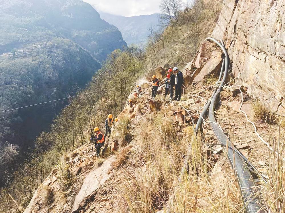 九龍縣挖金溝(煙袋)引水工程魁多鎮(zhèn)施工現(xiàn)場。