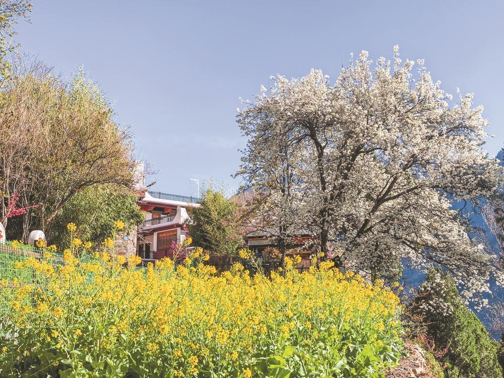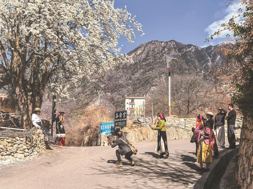 春風(fēng)有信,花開如期。隨著近期氣溫持續(xù)回暖,甘孜州丹巴縣迎來了春日里的“高光時刻”。漫山遍野的梨花與桃花次第綻放,如云似雪,燦若煙霞,將一座座古樸的嘉絨村寨裝點成一幅幅流動的絕美畫卷。藏寨碉樓在花影間若隱若現(xiàn),青石小徑落英繽紛,恍若世外桃源。來自天南海北的游客三五成群,或徜徉于蜿蜒小徑,靜享花間清幽;或換上色彩斑斕的嘉絨服飾,在花枝婆娑間定格春光。歡笑聲與快門聲此起彼伏,為山谷平添了盎然生機,共同繪就一幅“人在畫中游”的春日勝景。如織的游人循香而來,讓這片被譽為“最佳旅游鄉(xiāng)村”的土地,不僅憑“顏值”驚艷四方,更催生出紅紅火火的“花經(jīng)濟”——以花為媒,文旅融合,為鄉(xiāng)村振興注入了蓬勃活力。