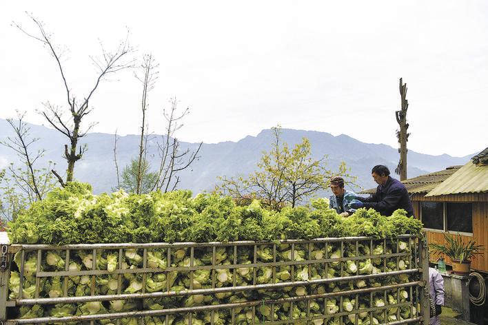 村民將采收的兒菜裝車