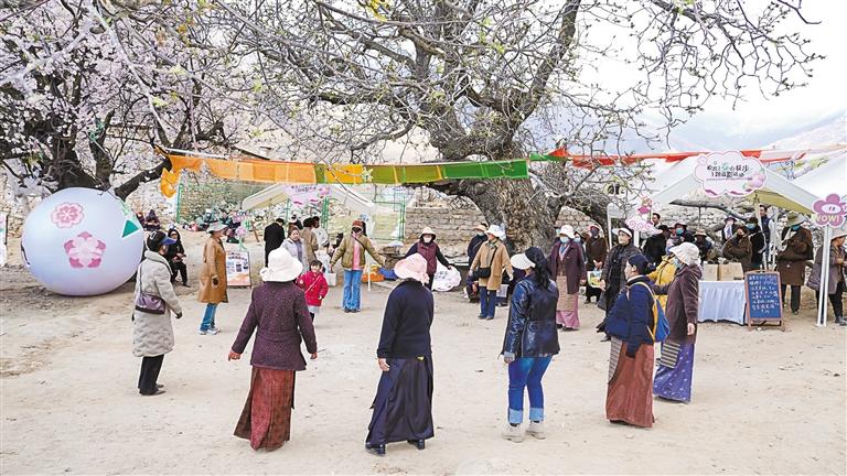 首頁 / 新聞 / 涉藏新聞 / 西藏 / 正文 上春山 賞桃花 來源 : 西藏日報(bào) 發(fā)布時(shí)間 : 2024-04-16 字體 :小 中 大 活動現(xiàn)場,游客和當(dāng)?shù)卮迕褚黄鹛琛1緢?bào)記者 劉斯宇 盧文靜 攝游客在活動現(xiàn)場的集市上選購特色商品。本報(bào)記者 王敏 攝每年4月初,拉薩北郊山上的桃花就會燦爛盛開,是市民游客最愛的賞花打卡地之一。4月12日,2024年娘熱上春山徒步主題攝影周在娘熱街道嘎如古村舉辦。在明媚的春光里,內(nèi)容豐富、形式多樣的賞花、品美食小吃、逛花間集市系列互動活動,為廣大游客和市民奉上了一場春日的盛宴。 編輯 : 拉專措