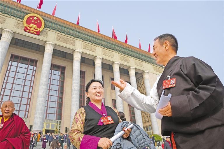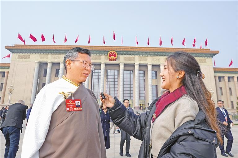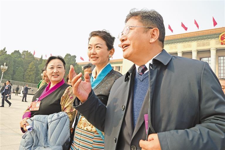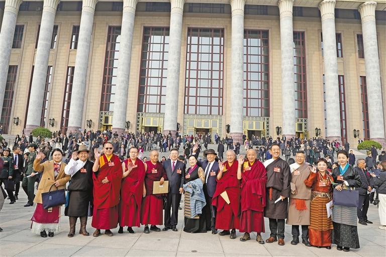 圖為住藏全國政協(xié)委員等參會人員在人民大會堂前合影留念。 記者 旦增平措 次旦央吉 攝