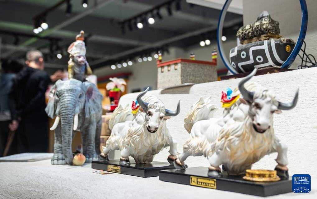這是在西藏一家文創(chuàng)超市里拍攝的西藏雅闊熱品牌設(shè)計(jì)有限公司設(shè)計(jì)制作的文創(chuàng)擺件(9月29日攝)。新華社記者 丁增尼達(dá) 攝??
