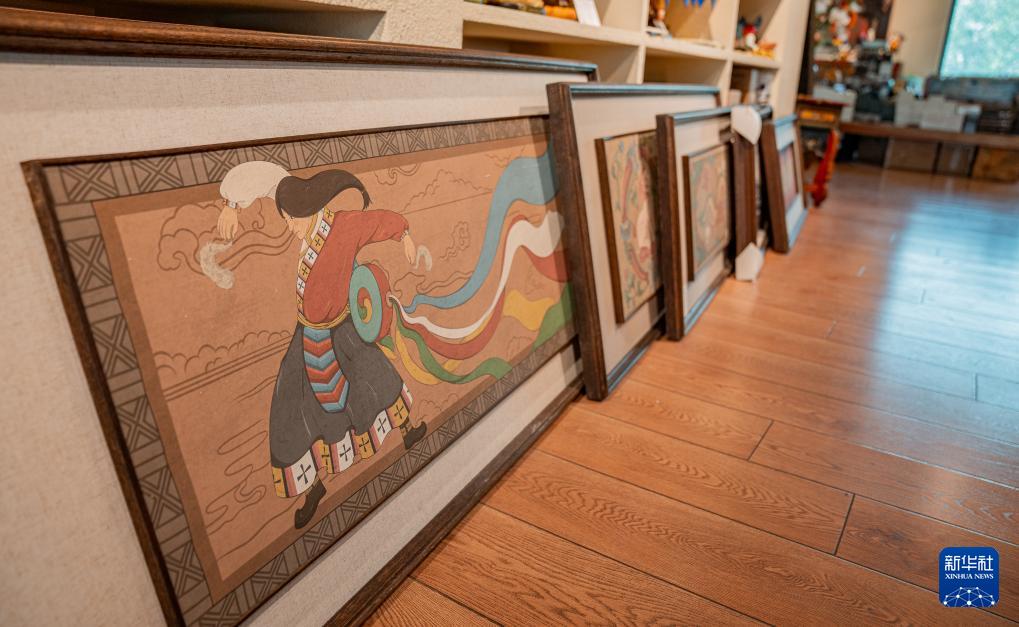 這是西藏雅闊熱品牌設(shè)計(jì)有限公司設(shè)計(jì)制作的“久河卓舞”主題裝飾畫(huà)(9月16日攝)。新華社記者 丁增尼達(dá) 攝