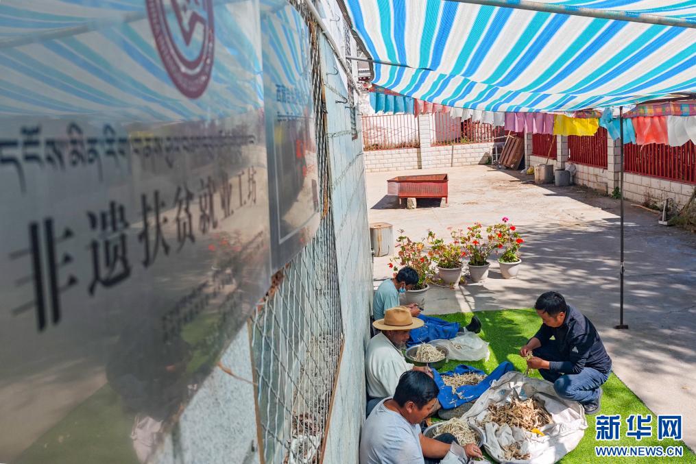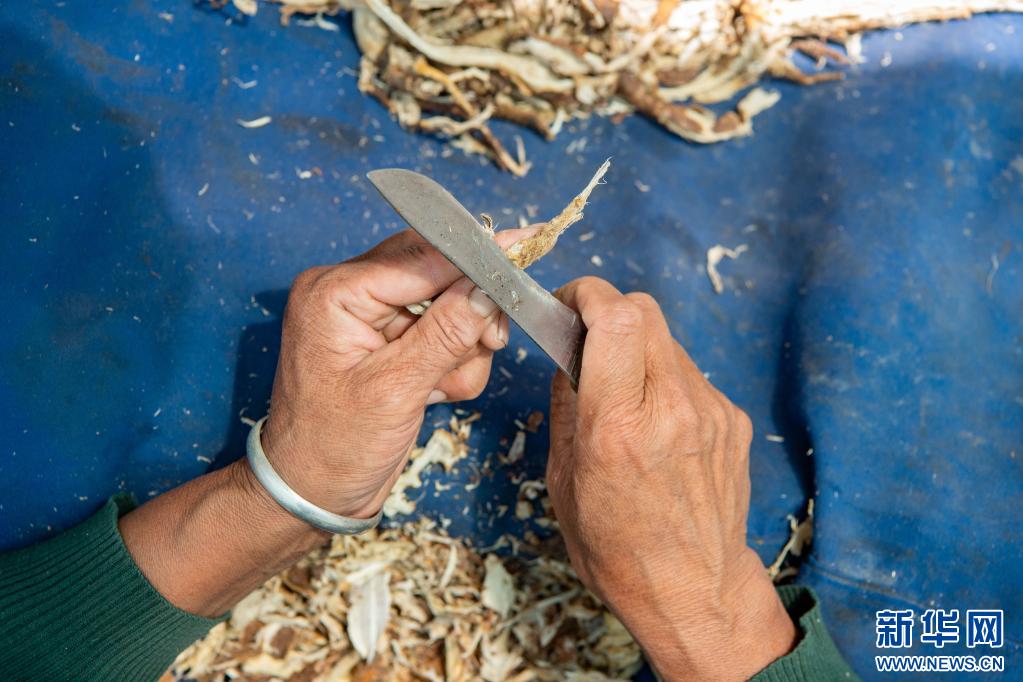 10月16日,合作社員工為藏紙原料狼毒草根去皮。新華網(wǎng) 旦增努布 攝