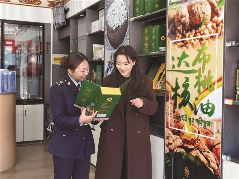 工作人員向稅務(wù)干部介紹核桃油?!⊥ㄓ崋T 吳軒 攝