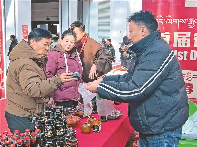 圖為市民在博覽會(huì)上選購(gòu)辣椒醬。本報(bào)記者 央金 攝