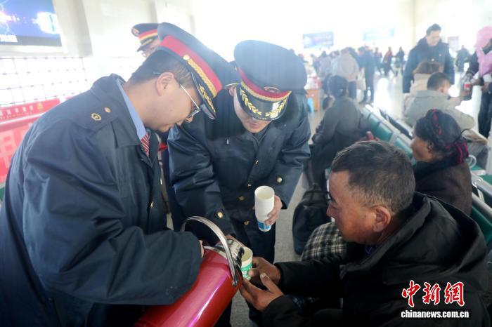 墨香未盡,暖意更濃。候車大廳里,黨員志愿者、“小花朵”青年志愿者化身“天路格?;ā?,穿梭在旅客中間。他們手捧福字送上祝福,端來熱氣騰騰的酥油茶、甜茶,用濃郁奶香驅(qū)散高原寒意,撫平旅途疲憊。