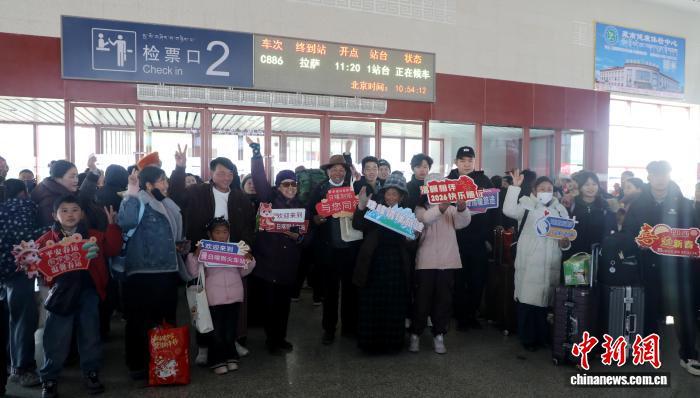 圖為即將乘坐春運列車回家的旅客在日喀則站合影。格桑央珍 攝