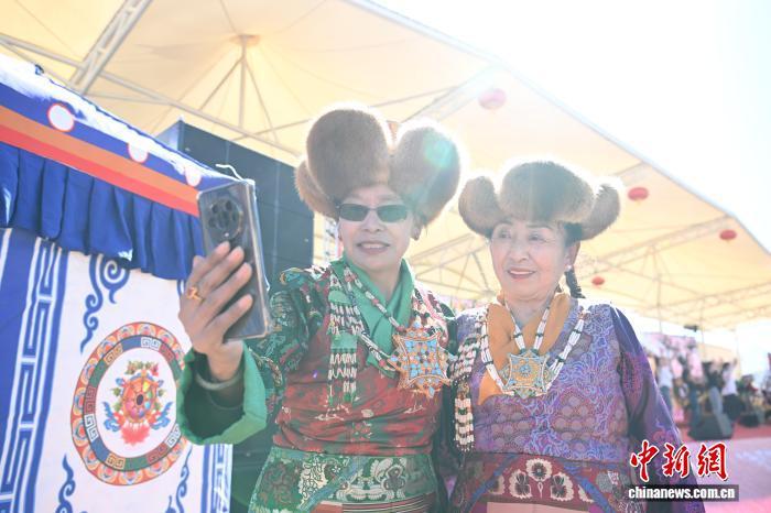 圖為西藏自治區(qū)群藝館老年藝術(shù)團(tuán)演員拍照留念。中新社記者 貢嘎來(lái)松 攝