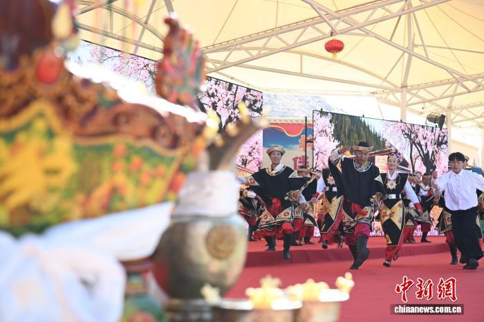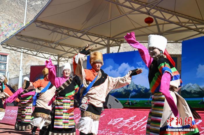 圖為羊湖民間藝術(shù)團(tuán)演員表演舞蹈《嘎拉村的歡笑》。中新社記者 貢嘎來(lái)松 攝