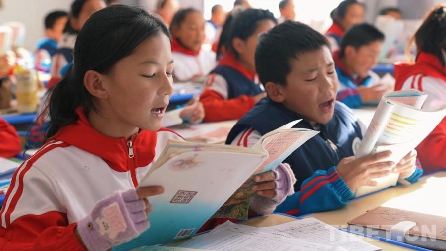 圖為南木林縣完小學(xué)生在上藏文課