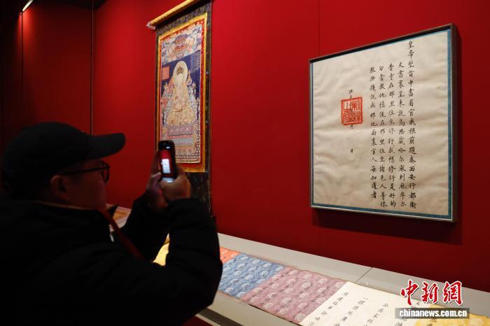 2月9日,由故宮博物院聯(lián)合西藏自治區(qū)文物局等多家文博單位共同舉辦的“萬法歸一:薩迦寺歷史文化與藝術(shù)”展在北京開幕。圖為嘉賓參觀展覽。中新社記者 韓海丹 攝