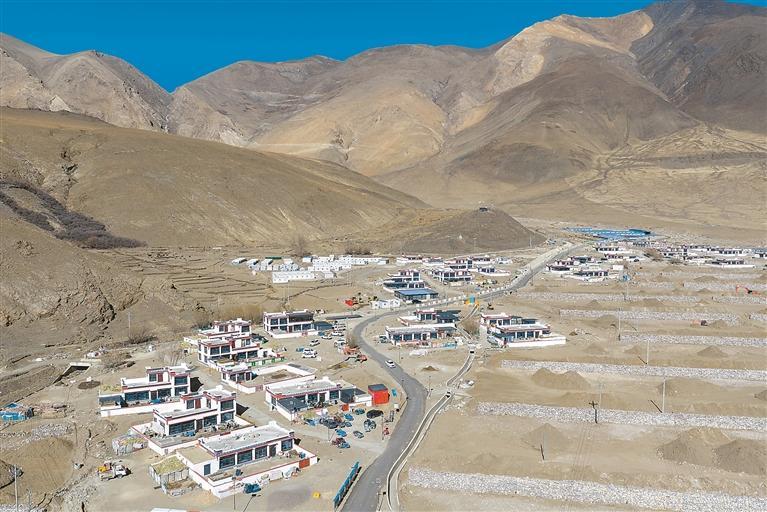 2月16日拍攝的西藏定日縣長所鄉(xiāng)古榮村災后重建的新居(無人機照片)。新華社記者 旦增尼瑪曲珠 攝