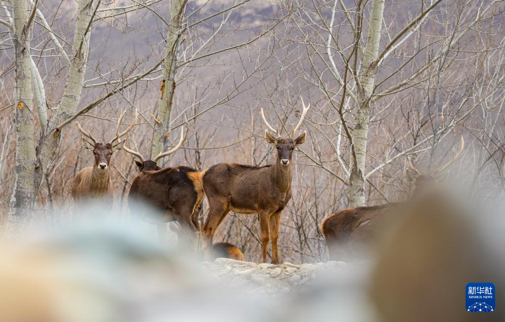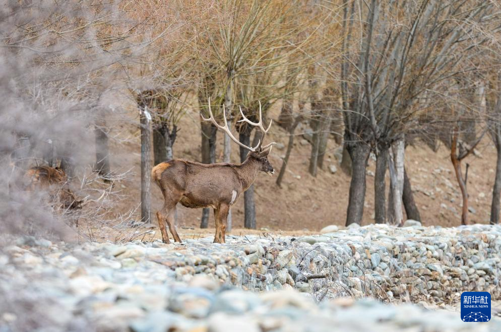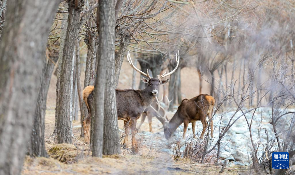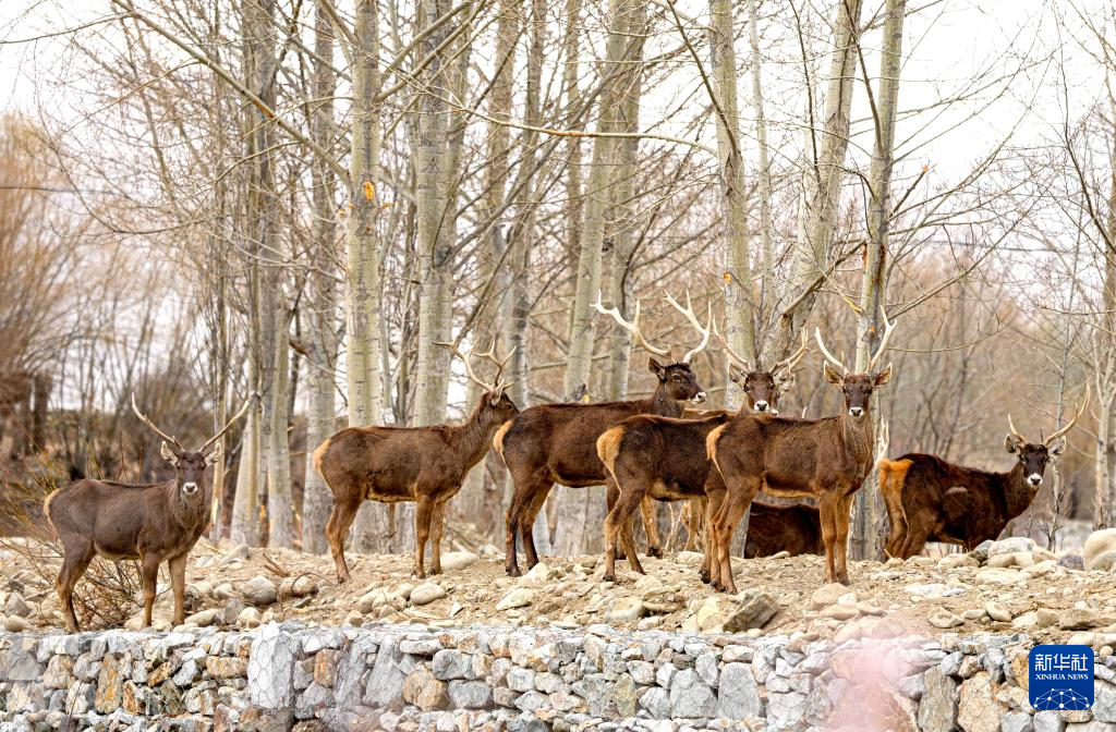 這是3月15日在西藏山南市乃東區(qū)結(jié)巴村拍攝的白唇鹿。新華社記者 晉美多吉 攝