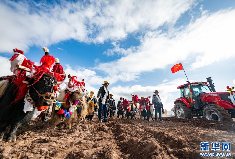 3月16日,西藏拉薩市林周縣春堆鄉(xiāng)春堆村的春耕儀式現(xiàn)場。新華網(wǎng) 旦增努布 攝