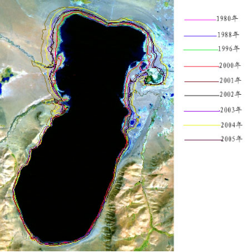 這是巴木錯(cuò)湖泊1980年至2005年水面面積遙感動態(tài)變化監(jiān)測圖。(受訪單位供圖)
