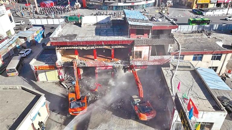 圖為山南市月光市場拆除現(xiàn)場?!”緢笥浾摺〉ぴ銎酱搿z