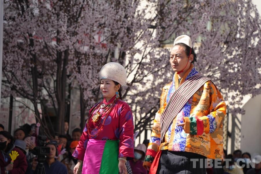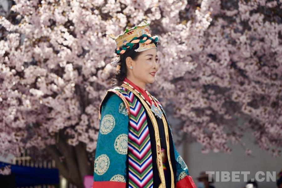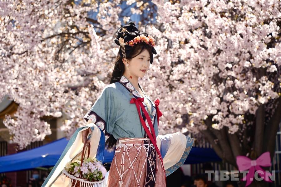 服飾文化是西藏傳統(tǒng)文化的重要組成部分,基本特征為肥腰、長(zhǎng)袖、大襟、右衽、長(zhǎng)裙、長(zhǎng)靴,并配有精美的金銀珠玉飾品。受自然環(huán)境、民風(fēng)民俗及生產(chǎn)方式影響,西藏服飾文化形成了鮮明的地域特色——拉薩服飾典雅莊重,日喀則服飾絢爛奪目,阿里服飾盡顯華貴風(fēng)范……傳統(tǒng)服飾與桃花交相輝映,為觀眾呈現(xiàn)了一場(chǎng)流光溢彩的視覺盛宴。(中國西藏網(wǎng) 記者/德吉卓瑪)
