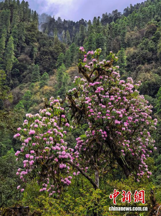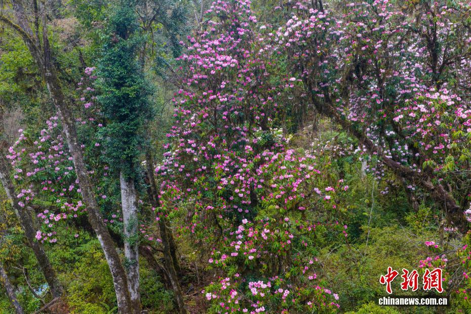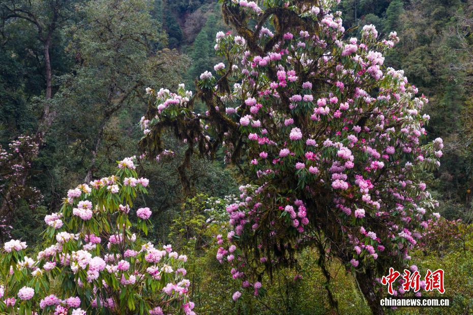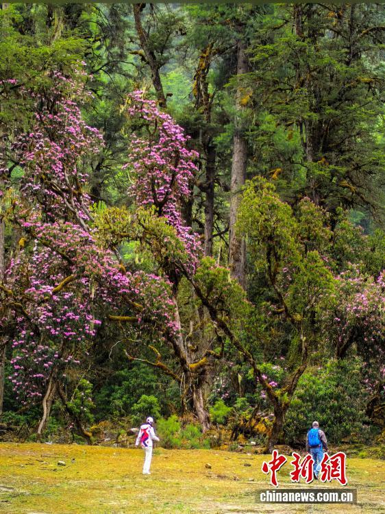 近日,流經(jīng)西藏那曲市嘉黎縣至林芝市波密縣的易貢藏布(也稱(chēng)易貢河)流域,迎來(lái)高山杜鵑最佳觀賞期。作為雅魯藏布江重要二級(jí)支流,易貢藏布兩岸山巒疊嶂,高山峽谷間,成片高山杜鵑競(jìng)相綻放。粉白、紫紅的花朵點(diǎn)綴于蒼松翠柏之間,與蜿蜒的河流相互映襯,構(gòu)成一幅壯麗的高原生態(tài)畫(huà)卷。圖為3月28日,徒步愛(ài)好者行走在藏東南的森林里,遠(yuǎn)處高山杜鵑花點(diǎn)綴。