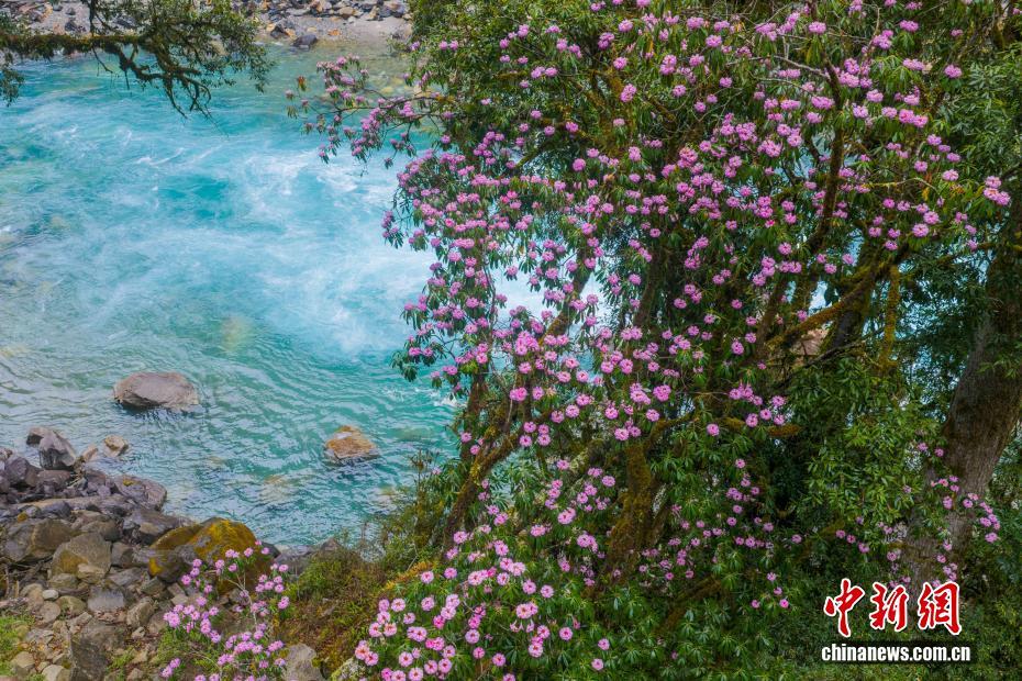 中國(guó)藏族網(wǎng)通訊 近日,流經(jīng)西藏那曲市嘉黎縣至林芝市波密縣的易貢藏布(也稱(chēng)易貢河)流域,迎來(lái)高山杜鵑最佳觀賞期。作為雅魯藏布江的二級(jí)支流,易貢藏布兩岸山巒疊嶂,高山峽谷間,成片高山杜鵑競(jìng)相綻放。粉白、紫紅的花朵點(diǎn)綴于蒼松翠柏之間,與蜿蜒的河流相互映襯,構(gòu)成一幅壯麗的高原生態(tài)畫(huà)卷。圖為3月28日,奔騰的易貢藏布與盛開(kāi)的高山杜鵑。