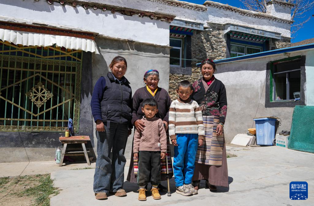 次仁桑姆和家人在宗卡村家中合影(3月26日攝)。新華社記者 晉美多吉 攝