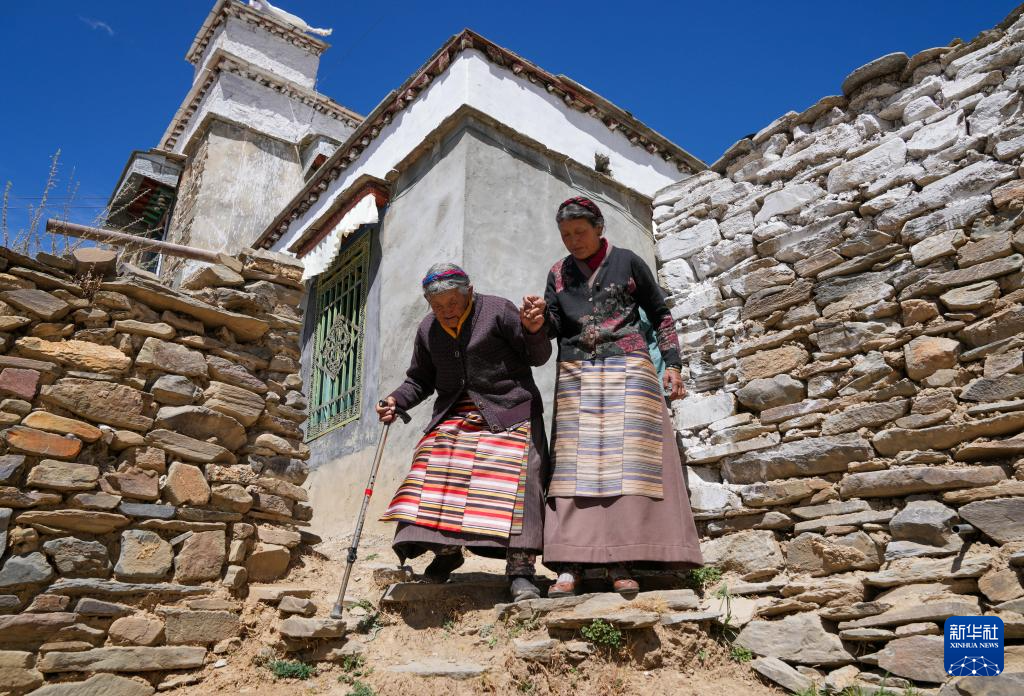 次仁桑姆在宗卡村家中曬太陽(3月26日攝)。新華社記者 晉美多吉 攝