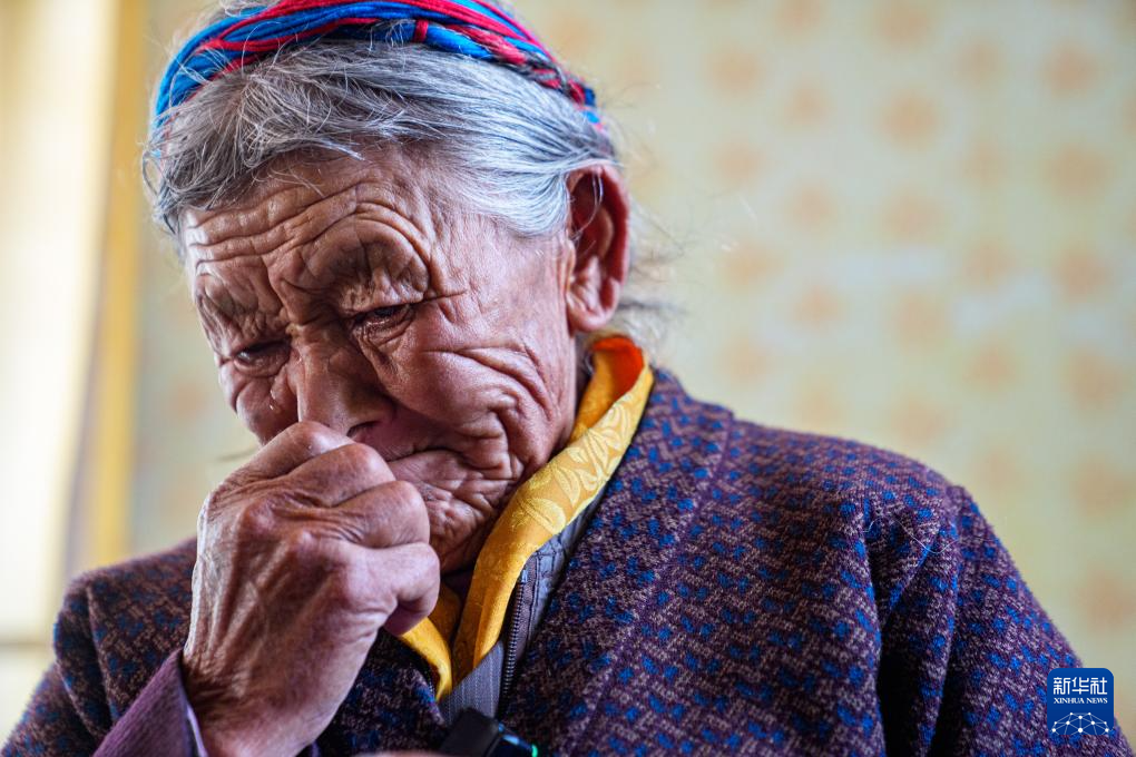 次仁桑姆和家人在宗卡村家中回憶曾經(jīng)的生活,黯然淚下(3月26日攝)。新華社記者 丁增尼達 攝