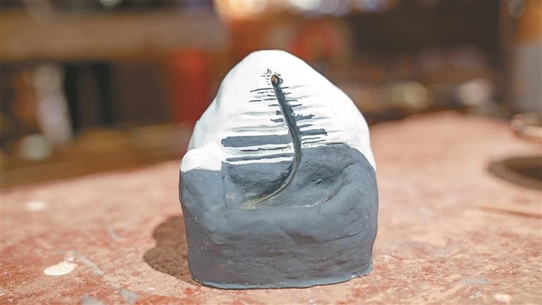 彭毛才讓制作的岡仁波齊造型倒流香爐。本報(bào)記者 歐珠次仁 攝