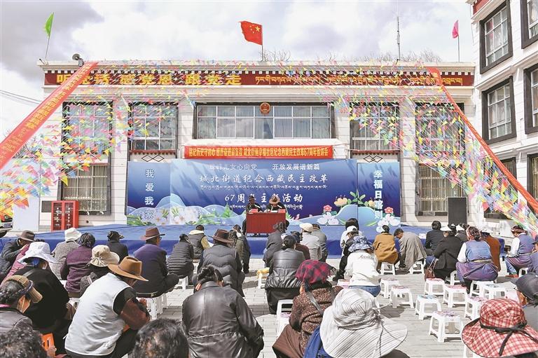 日喀則桑珠孜區(qū)城北街道幸福社區(qū)開展紀念西藏民主改革67周年宣講會現(xiàn)場。本報記者 旦增嘎瓦 攝